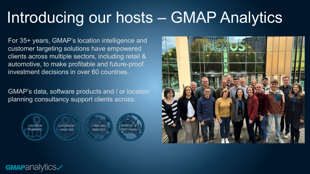 GMAP will provide some insight into the UK’s path towards 100% Electric Vehicle adoption – showing what is really going on behind the headlines and giving a view on what this means for location planning in both the Automotive sector and the wider retail environment.